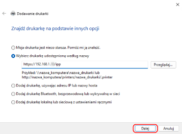 Ustawianie drukowania IPP na komputerze