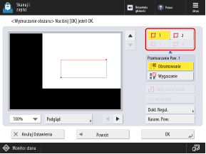 Aby ponownie określić obszar, naciśnij przycisk [Kasow. Pow.] na ekranie [Wyznaczanie obszaru: Wprowadzanie dotykowe] i powtórz operację od kroku