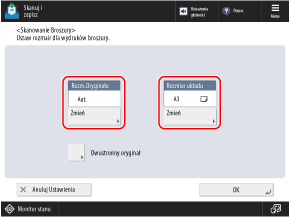 Naciśnij [Zmień] w obszarze [Rozm.Oryginału], wybierz rozmiar oryginału, a następnie naciśnij [OK].