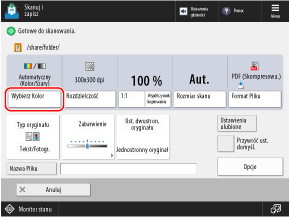 * Kolorowe oryginały mogą zostać rozpoznane jako czarno-białe, w zależności od stanu oryginału, np. gdy tylko krawędzie oryginału są kolorowe. W takim przypadku wybierz [Pełne Kolory].