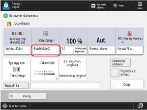 Zwiększ rozdzielczość, jeśli chcesz dokładniej zeskanować oryginały, i zmniejsz rozdzielczość, aby uzyskać mniejszy rozmiar pliku.