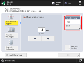 Naciśnij [Zmień], wybierz rozmiar oryginału i naciśnij [OK].