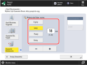 Wprowadzając indywidualne szerokości usuwania dla góry, dołu, lewej i prawej strony, naciśnij [Niezależna Regulacja] i wprowadź szerokości usuwania.