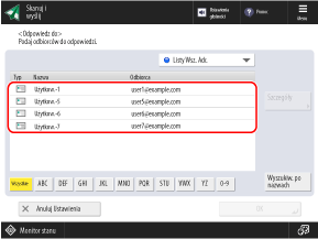 Zostanie wyświetlony ekran [Odpowiedz do] (ekran książki adresowej).