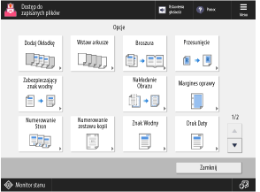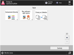 Naciśnij przyciski na tym ekranie, aby skonfigurować szczegółowe ustawienia drukowania. Po skonfigurowaniu ustawień drukowania naciśnij [Zamknij], aby powrócić do ekranu ustawień drukowania.