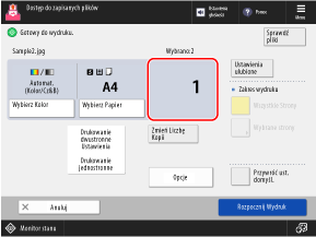 Za pomocą panelu sterowania można bezpośrednio drukować pliki PDF, XPS, JPEG lub TIFF zapisane w przestrzeni Zaawansowana przestrzeń za pomocą urządzenia.