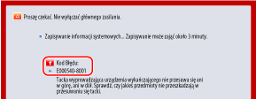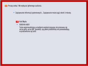 W zależności od błędu może pojawić się komunikat z prośbą o niewyłączanie zasilania urządzenia, ponieważ urządzenie zapisuje informacje o systemie po wystąpieniu błędu. W takim przypadku nie wyłączaj urządzenia, dopóki dane nie zostaną zapisane.