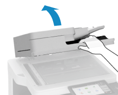 Jeżeli oryginał zaciął się wewnątrz pokrywy podajnika, delikatnie wyciągnij go w kierunku wskazanym strzałką.