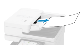 Jeśli oryginał jest zacięty, delikatnie wyciągnij go w kierunku wskazanym przez strzałkę.