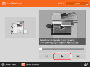 * Ekran będzie wyświetlany wielokrotnie, aż do usunięcia zacięcia papieru lub zszywek. Po naciśnięciu przycisku [Zamknij] ekran może zostać tymczasowo zamknięty i możliwe będzie wykonanie innej operacji lub zmiany ustawienia.