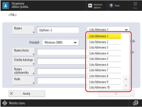 Rejestracja odbiorców (informacje o folderze udostępnionym) w książce adresowej z wyprzedzeniem, w wypadku wielokrotnego zapisywania zeskanowanych danych w określonym folderze udostępnionym, pozwala uniknąć konieczności wprowadzania informacji o odbiorcach przy każdym wysyłaniu danych.