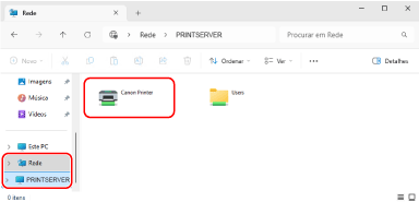Em [Network], selecione o servidor de impressão para visualizar a impressora partilhada.