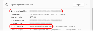 Para um sistema operativo de 64 bits, é apresentado [Sistema Operativo de 64 bits].