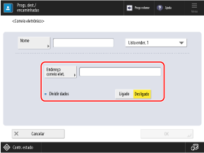Ao registar um destino de correio eletrónico no livro de endereços ou num botão de um toque, configure os itens descritos abaixo.