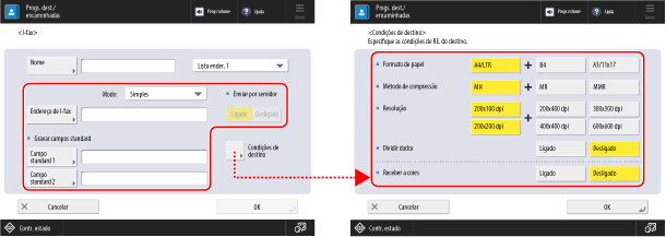 Defina as condições de destino de acordo com as especificações da máquina de destino. Pode ocorrer um erro se definir condições não suportadas pela máquina de destino.