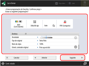 Utilize o painel de controlo para registar as Definições favoritas. Não pode registar definições favoritas através da Remote UI (Interface Remota) a partir de um computador.