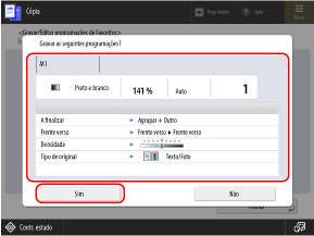 Verifique as definições e clique em [Sim].