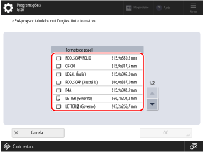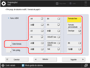 Para saber os formatos de papel apresentados quando [Outro formato] é pressionado, consulte o seguinte: