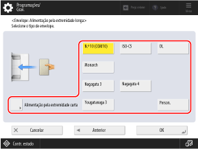 Pressione [Alimentação pela extremidade longa] ou [Alimentação pela extremidade curta] de acordo com a orientação dos envelopes e selecione o formato do envelope.