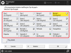 Carregue em [Prog. detalh.], e selecione o tipo de papel na lista exibida.