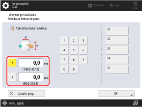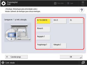 Dependendo do formato dos envelopes, [Seguinte] pode aparecer. Carregue em [Seguinte], introduza o comprimento da aba do envelope e, em seguida, carregue em [OK].