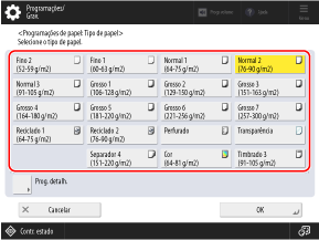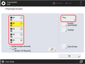 Carregue em [Prog. detalh.], e selecione o tipo de papel na lista exibida.