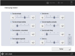 É possível ajustar o volume dos sons que notificam operações e estados, tal como quando utiliza o painel de controlo ou quando são detetados erros.