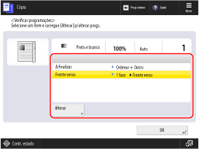 Pode usar os botões de programação neste ecrã para configurar as programações ao copiar.
