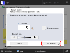 Antes de premir [Inic. impressão], reintroduza o número de cópias utilizando as teclas numéricas.