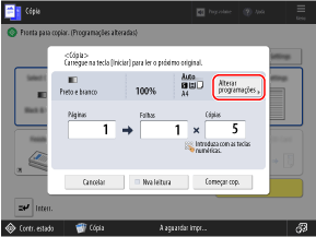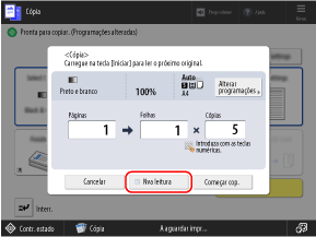 Antes de premir [Começar cop.], reintroduza o número de cópias utilizando as teclas numéricas.