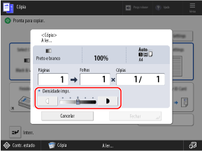 Pode arrastar o cursor para a esquerda ou para a direita para alterar a definição da densidade.