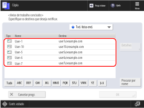 Selecione o destino (endereço de e-mail) a ser definido como destino da notificação.