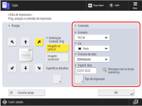 Adiciona a data (ano, mês e dia) ao copiar. Pode especificar a data a ser impressa.