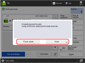 O ecrã do fax é exibido.