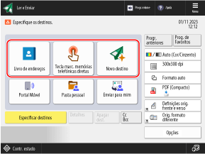Pode premir [Progr. anteriores] para recuperar as definições utilizadas anteriormente para enviar dados digitalizados. O destino de envio é aplicado juntamente com as definições recuperadas.