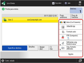 Os dados lidos são enviados por correio eletrónico num ficheiro TIFF anexado. Tal como no envio de um e-mail normal, pode adicionar um assunto e uma mensagem, e especificar vários destinos.