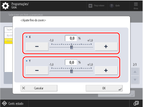 Mova o controlo deslizante para a esquerda ou direita para ajustar a ampliação para [X] (horizontal) e [Y] (vertical).