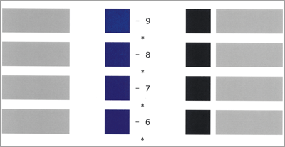 Passo 1: Gravar o tipo de papel* Imprima novamente a tabela de acordo com o procedimento de ajuste manual.