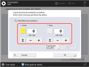 Prima o botão [Frente] ou o [Verso] para selecioná-lo e insira o valor.