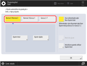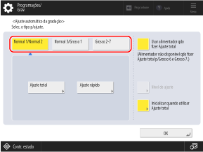 Utilize o painel de controlo para efetuar a calibração (Ajuste total). Não é possível efetuar a calibração (Ajuste total) com a Remote UI (Interface Remota) a partir de um computador.