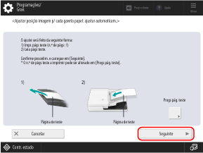 A(s) página(s) de teste é(são) digitalizada(s) e o ajuste é efetuado.