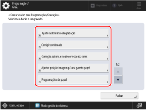 No painel de controlo, prima [Atalho Progs/Grav.] no ecrã [Início].
