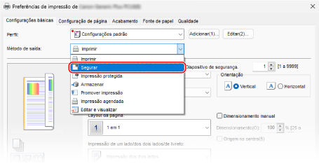 O documento em espera pode ser impresso após rever os detalhes do documento no painel de controlo ou imprimir uma amostra para verificar o resultado da impressão para evitar impressões indesejadas.