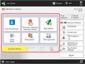 * Se [Enviar p/pasta pessoal] não for exibido, use [Ler e Enviar] para especificar a Pasta Pessoal como destino ao enviar.