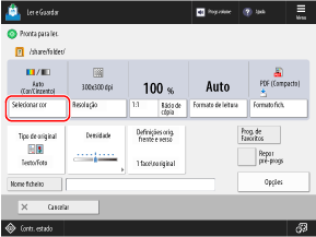 * Os originais a cores podem ser detetados como originais em preto e branco dependendo das suas condições, tal como quando apenas as extremidades do original são a cores. Neste caso, selecione [Todas as cores].