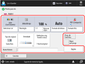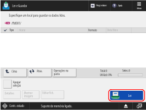 No painel de controlo, prima [Ler e Guardar] no ecrã [Início].