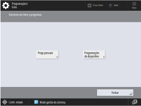 Para alterar as definições da máquina conforme necessário, selecione [Programações do dispositivo].