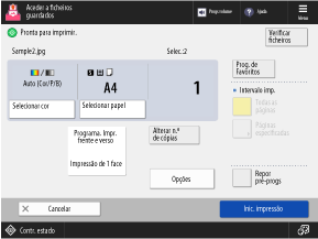 Carregue em [Inic. impressão] no botão no canto inferior direito do ecrã para iniciar a impressão.