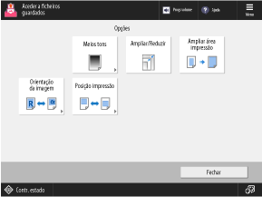 Carregue nos botões neste ecrã para definir as definições detalhadas de impressão. Após definir as definições de impressão, carregue em [Fechar] para voltar ao ecrã de definições de impressão.