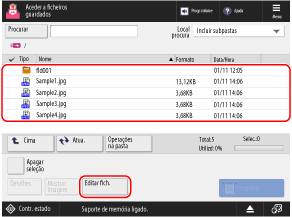 Selecione o ficheiro que pretende renomear, e pressione [Editar fich.]